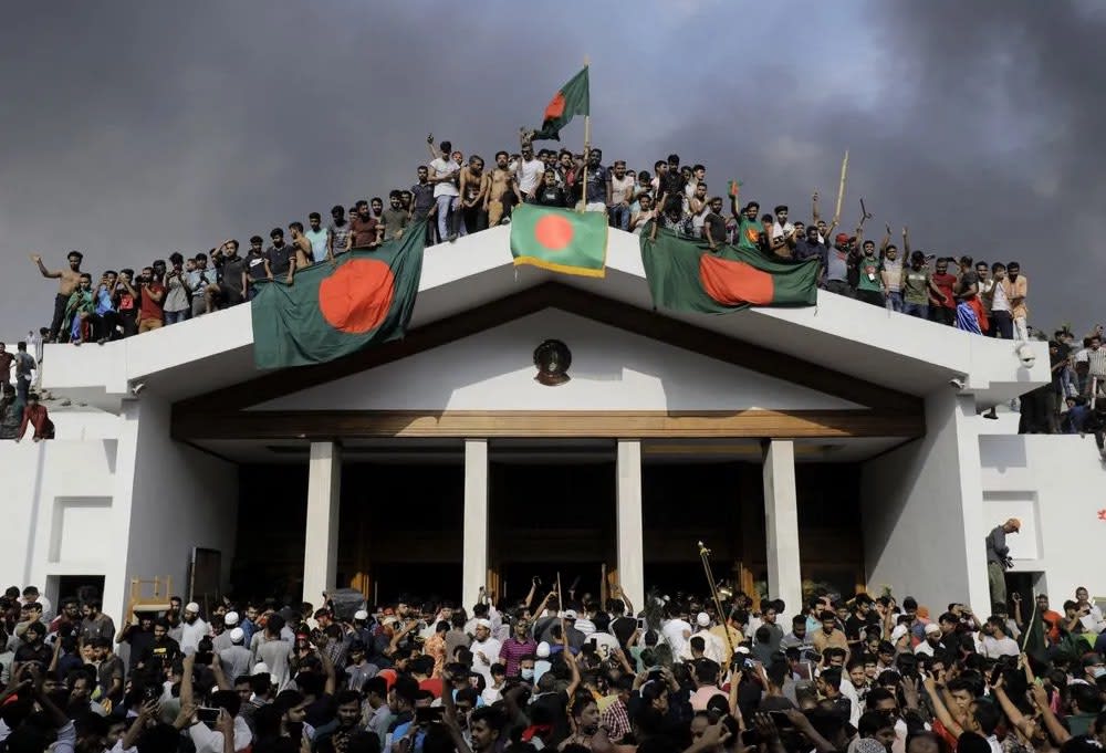 Bangladesh's Prime Minister Sheikh Hasina resigned and fled the country amid weeks of violent protests against a quota system for government jobs, which escalated into a broader challenge to her 15-year rule. Thousands of demonstrators stormed her residence and other buildings linked to her party. The resignation threatens further instability in Bangladesh, already plagued by high unemployment and corruption.