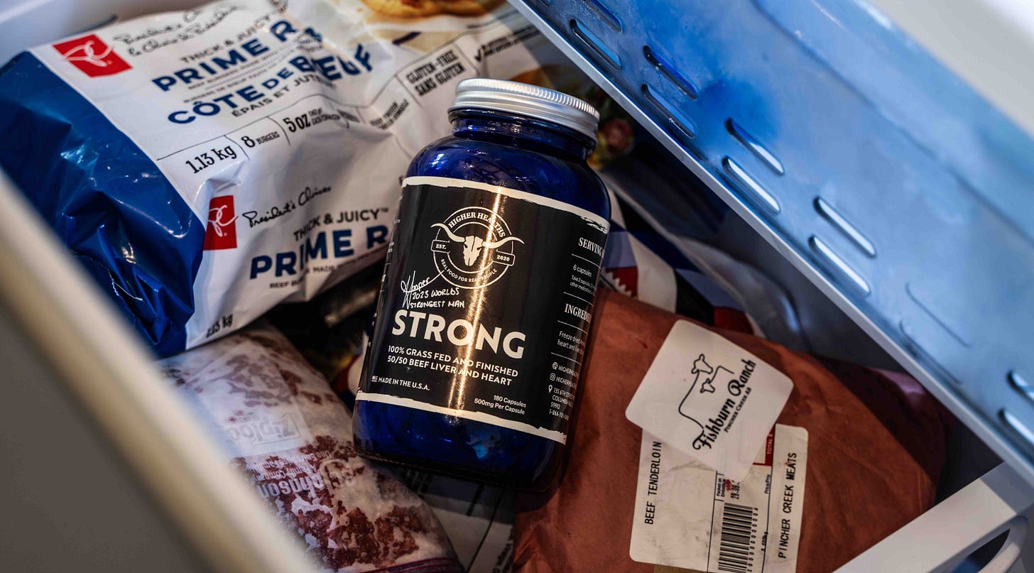 As for why I choose Higher Healths organ supplements: their organ supplements are sourced from 100% grass-fed, grass-finished cattle raised by Canadian regenerative farmers. I also have a personal relationship with the founders, who created this company to tackle their own health issues.