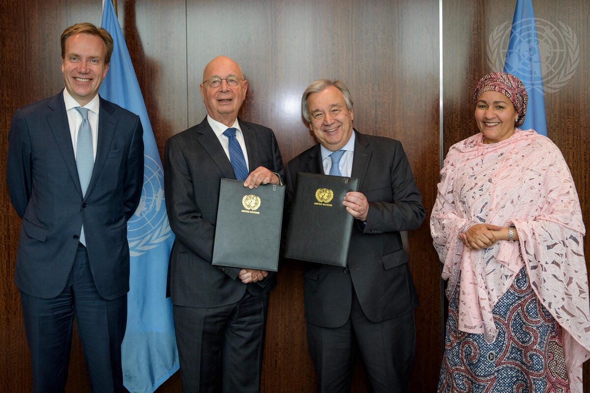 The leaders of the WEF and UN after signing their “Strategic Partnership Framework for Agenda 2030”