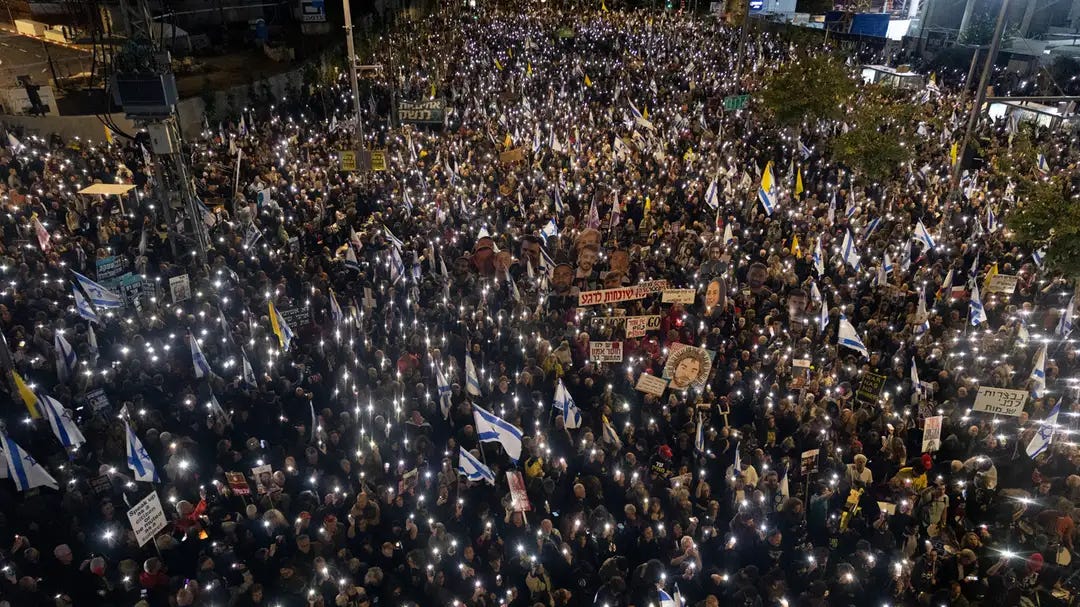 100,000 Israelis Flood Streets in Mass Protests as Gaza Offensive Reignites