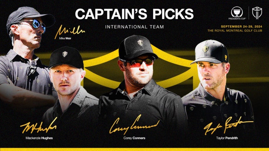 Weir Picks Three Canadians for International Team at Presidents Cup