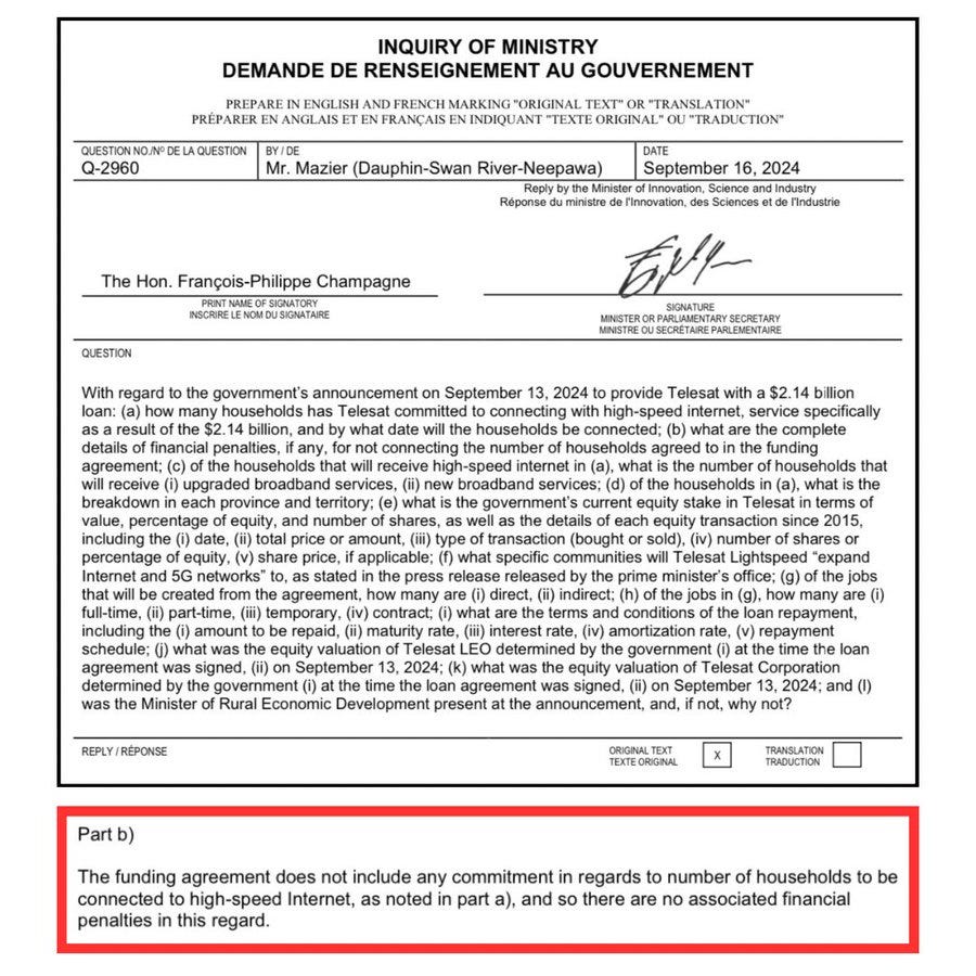 The level of corruption within the Canadian government is incomprehensible. Recently, Telesat was handed 2.14 billion taxpayer dollars to connect Canadian households to high-speed internet—but here’s the catch: there’s no requirement for Telesat to connect a single home, nor any penalties if they fail to deliver.