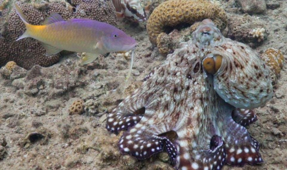 Octopus and Fish Hunt Together, Taking Turns to Lead