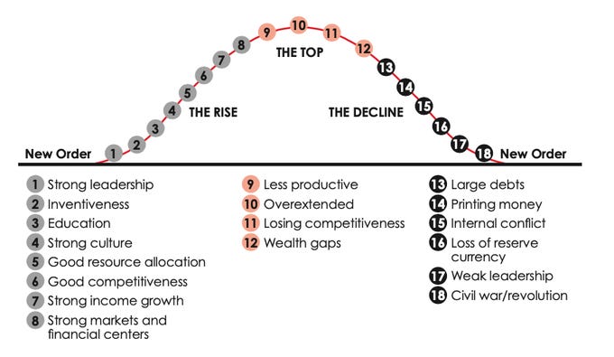 We are at a pivotal point in history where global power and social structures are shifting dramatically, as outlined by Ray Dalio in his analysis of big historical cycles. This shift also lines up with Howe & Strauss' cycle thesis in The Fourth Turning. Most of these seminal works analyze these historical cycles from an American perspective. However, I looked through the data so Canadians can clearly understand our position within these cycles to navigate the next decade effectively.