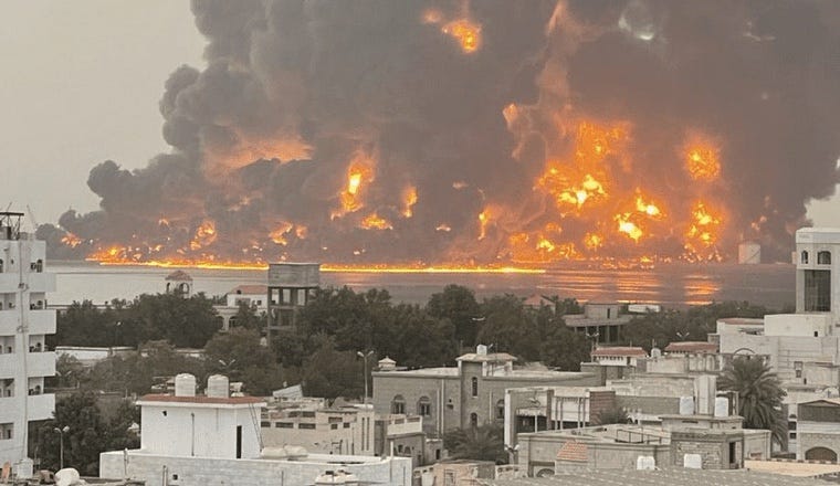 Powerful airstrikes hit the Red Sea port city of Hodeidah, Yemen, a day after Israeli officials vowed retaliation for a drone attack on Tel Aviv that killed one person and injured ten. The strikes targeted a refinery and electricity infrastructure, causing significant damage, killing at least five and injuring another 87. This marks the first direct Israeli response to Houthi attacks from Yemen since the Houthis began targeting Israel with missiles and drones last year. Prime Minister Benjamin Netanyahu emphasized that Israel will reach any target deemed necessary. Meanwhile, Yemen's Houthis vowed further attacks on Israel. Source: The Guardian