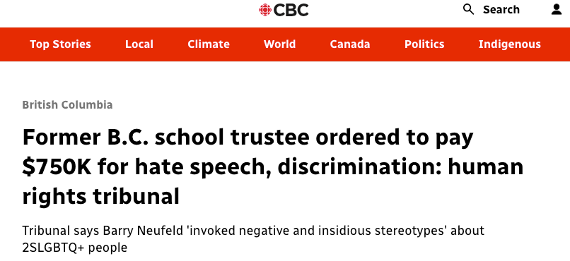 If digital expression becomes increasingly policed—whether by state agencies or by platforms responding to regulatory threat—institutions adapt. Universities recalibrate acceptable discourse. Corporate HR policies mirror federal language. Media outlets narrow guest lists to avoid reputational or regulatory exposure. Once these powers are entrenched, it would take only a few actions by the legal system to suppress dissent, setting the stage for a new, tightly controlled order to take hold. If you’re wondering where we’re at in this cycle, all you have to do is read yesterday’s news - Former B.C. school trustee ordered to pay $750K for hate speech, discrimination.