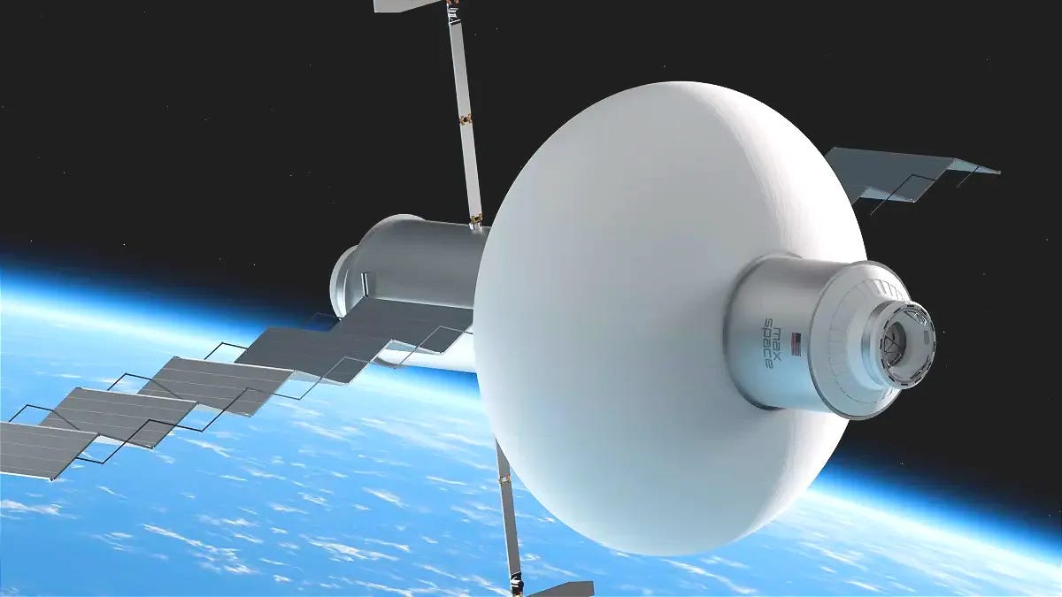 Max Space plans to launch Thunderbird Station, a commercial space station featuring a single expandable module that grows to 350 cubic meters in orbit—about one-third the volume of the ISS—and supports four people continuously. The station includes two docking ports for visiting vehicles and a morphic interior structure, allowing crews to reconfigure the soft-goods interior for habitation, research, or large-scale in-orbit manufacturing.