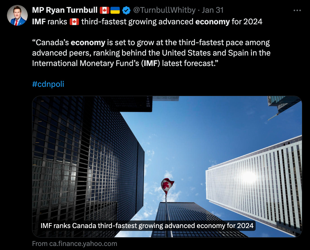 The Liberal immigration policies have acted as a smokescreen, hiding Canada’s grim economic landscape. Recently, Justin Trudeau’s lackeys, including Chrystia Freeland, Steven Guilbeault, and other MPs, tweeted a forecast by the International Monetary Fund (IMF).
