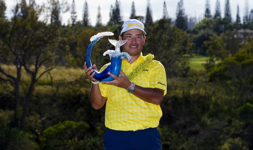 Hideki Matsuyama started the PGA Tour season with a record-breaking performance at the Sentry, winning by three shots with an 8-under 65 and finishing at 35-under 257. This set a new record for the lowest score to par in PGA Tour history, surpassing Cameron Smith’s 34-under from 2022. Matsuyama also made a record 35 birdies or better during the tournament. Morikawa, who shot no round worse than 66, finished second. Matsuyama's victory, his 11th career PGA Tour title, earned him $3.6 million, pushing his career earnings over $60 million. More